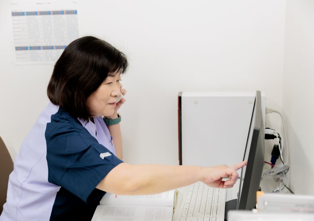 入退院サポートセンターのスタッフと協働して、手術などで入院される予定の患者さんを対象に、普段使用されているお薬の情報の確認をしています。