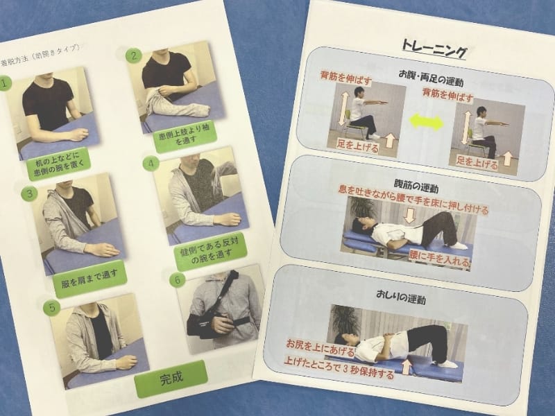 リハビリ時間以外でも運動ができるように自主トレーニング方法の指導を積極的に行っています。
