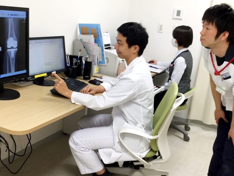 医師の診察時、理学療法のオーダーが出されると理学療法が開始されます。身体の状態について医師と共有し、必要に応じて診察に同席いたします。患者様・医師・理学療法士が一丸となり、症状の改善に向けて取り組みます。