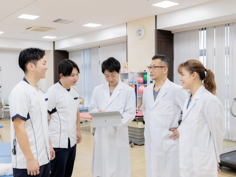 リハビリテーション科では、院内にて疾患ごとのチーム(肩・手の外科・スポーツなど)を形成し、専門分野の最新知見や技術研鑽に努めています。